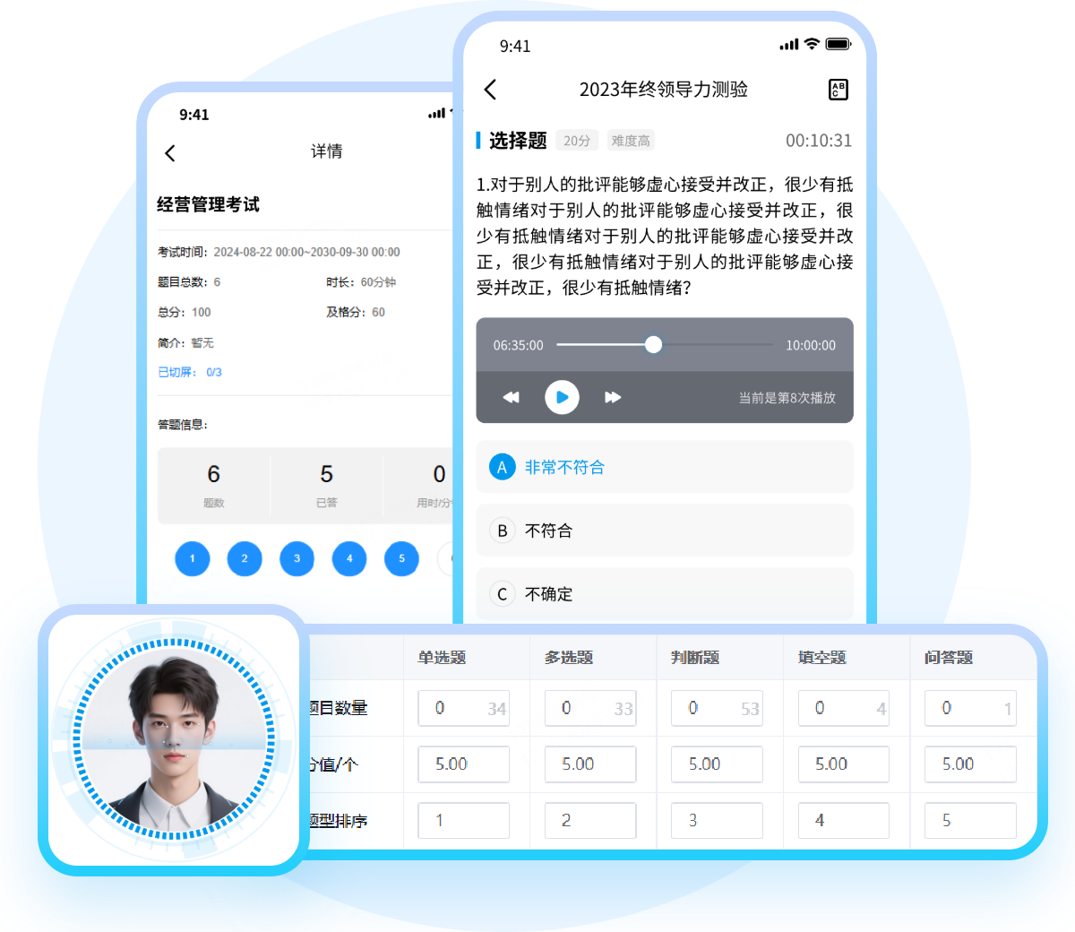 2. 人脸识别、防切屏、随机组卷等功能智能防作弊